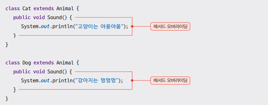 public void Sound() { System.out.println(“고양이 울음소리는 야옹야옹“); } }